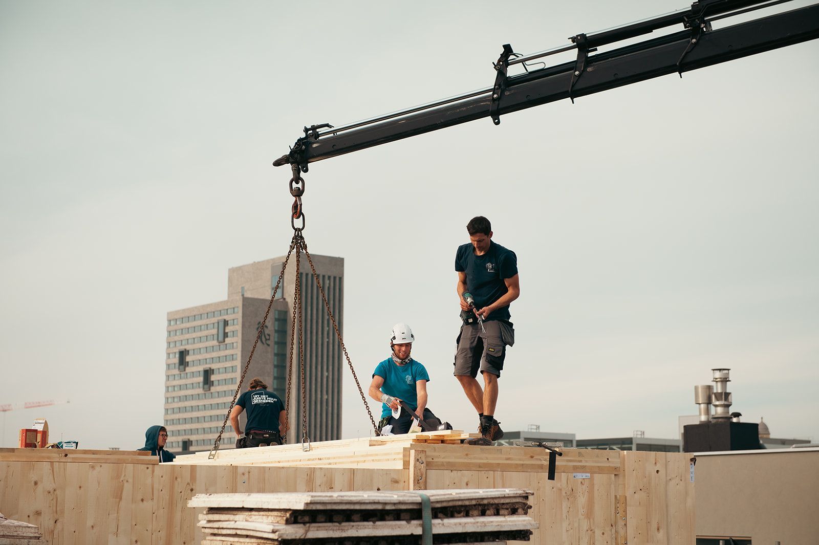 Optopping in CLT op bestaande woning. Deze werf moest zo snel als mogelijk gaan omwille van de waterdichting van de bestaande, reeds afgewerkte woning zo goed mogelijk te garanderen. Het huidige groendak werd er af genomen en zal hergebruikt worden op het nieuwe dak. Er werd gekozen voor clt met afgewerkte graad aan de kant van het plafond. De muren worden binnekort door onze noeste werkers bekleedt met fermacell. in samenwerking met: @vangeldertilleman @binderholzgroup @vekohoutwerkButton